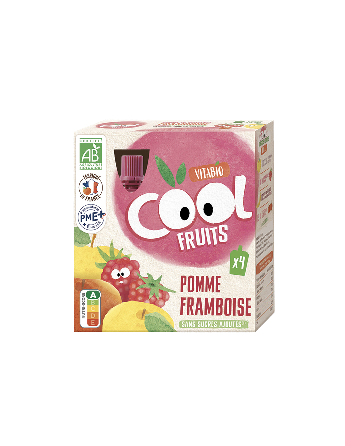 Puré de manzana, frambuesa, plátano y zumo de limón ecológico.