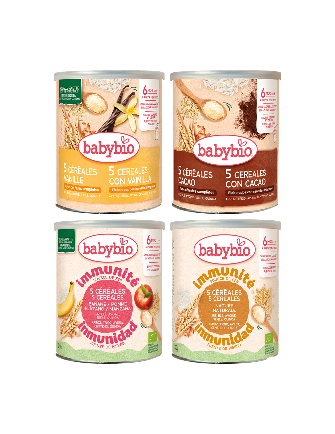 Pack de 4 Cereales Infantiles Ecológicos Babybio - Sin Azúcares Añadidos