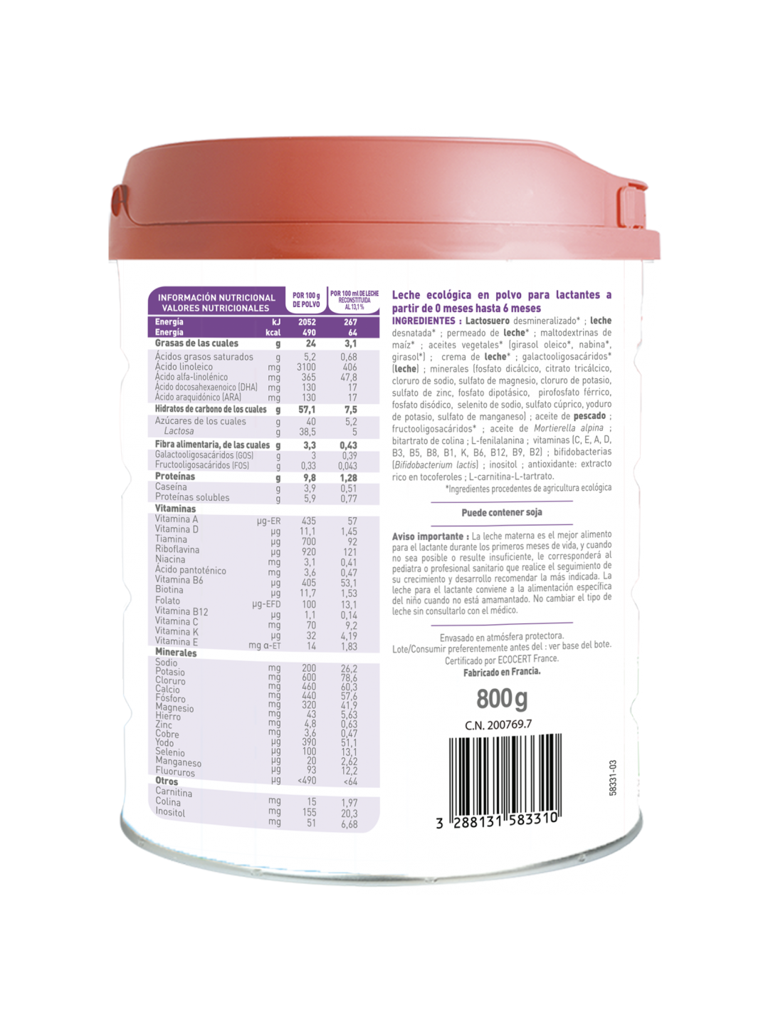 Todas as etapas são controladas especificamente por um organismo certificador independente que garante a conformidade com as normas de produção biológica. Além disso, todos os componentes das fórmulas Babybio são o resultado de uma seleção cuidadosa e estão em conformidade com as normas infantis.