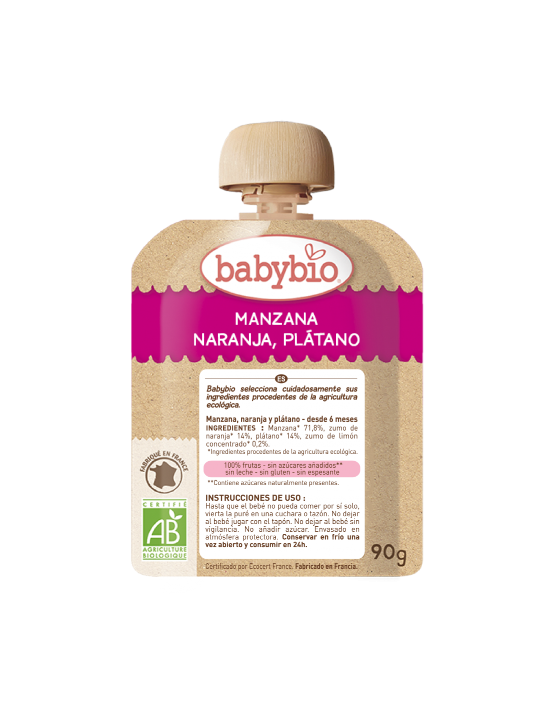 Na Babybio, apenas adicionamos fruta às nossas receitas. Não encontrará outros ingredientes como leite, cereais, açúcar e, claro, não adicionamos conservantes ou corantes. Encontrará apenas frutas que fornecerão ao seu bebé as vitaminas, minerais, fibras e hidratos de carbono necessários para um crescimento e desenvolvimento saudáveis. Ideal para uma alimentação saudável e equilibrada!